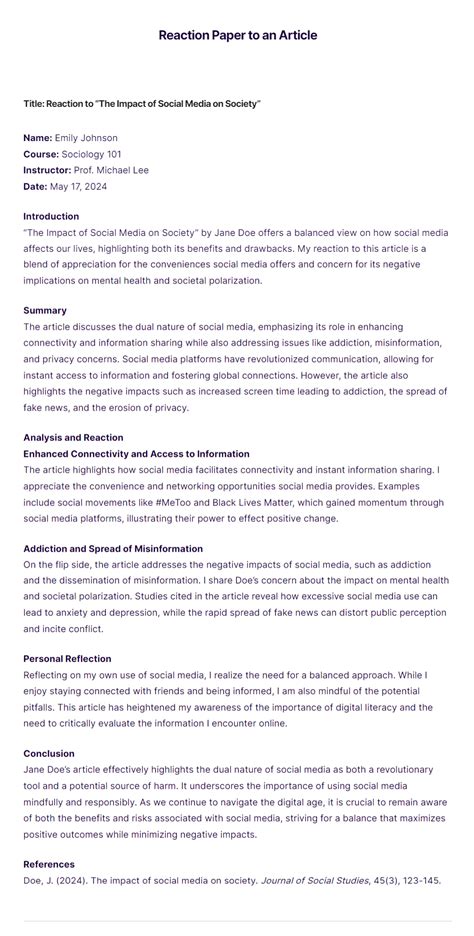 Read Online examples of reaction papers from an article Epub online is a convenient and frugal way to read examples of reaction papers from an article you love right from the comfort of your own home. Yes, there sites where you can get Epub "for free" but the ones listed below are clean from viruses and completely legal to use.