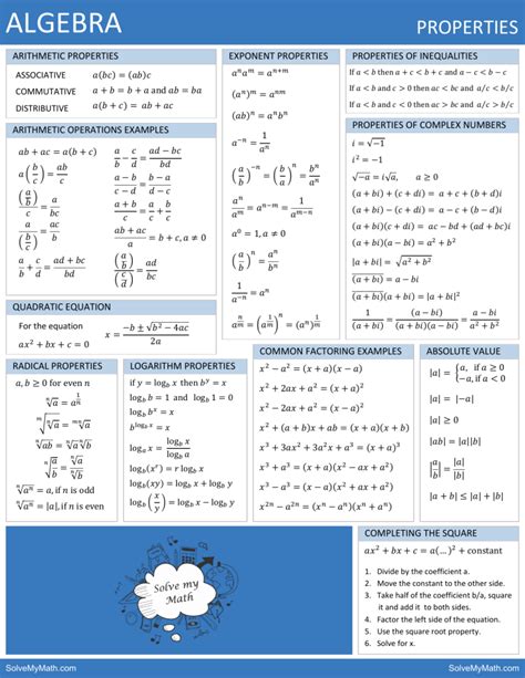 Read algebra properties cheat sheet PDF